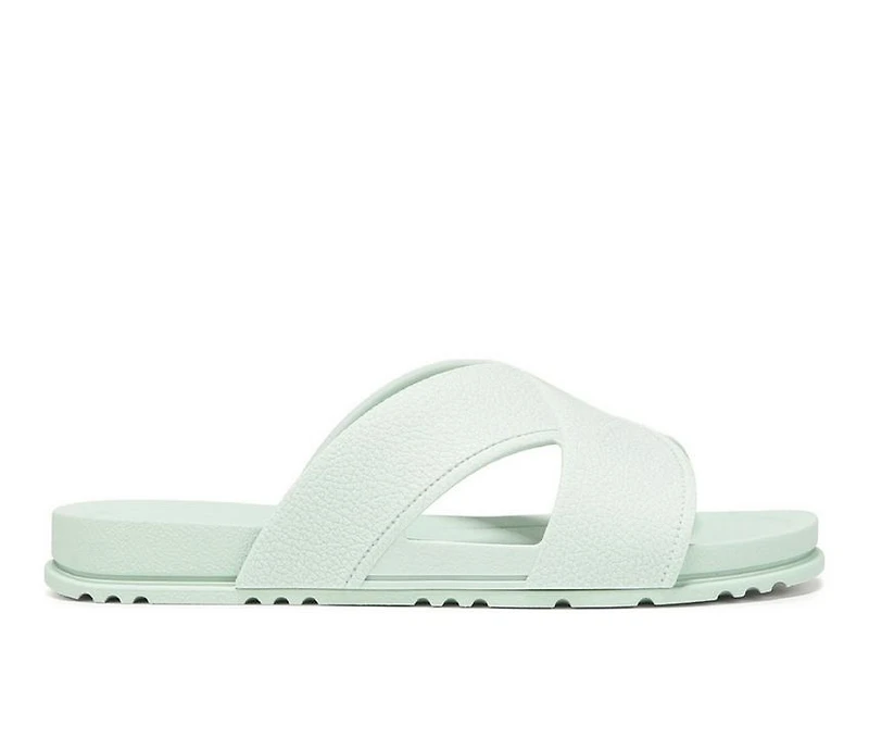 Women's Dr. Scholls Sun Dreamer Sandals This slide sandal brings easy everyday wear with a clean, modern look. The molded PVC upper features dual crisscross straps for simple styling and slip-on convenience. Insole Technology provides anatomical cushioning and support for comfort that lasts. Finished with an open toe and a 0.875" heel height, it’s a go-to for warm-weather days.