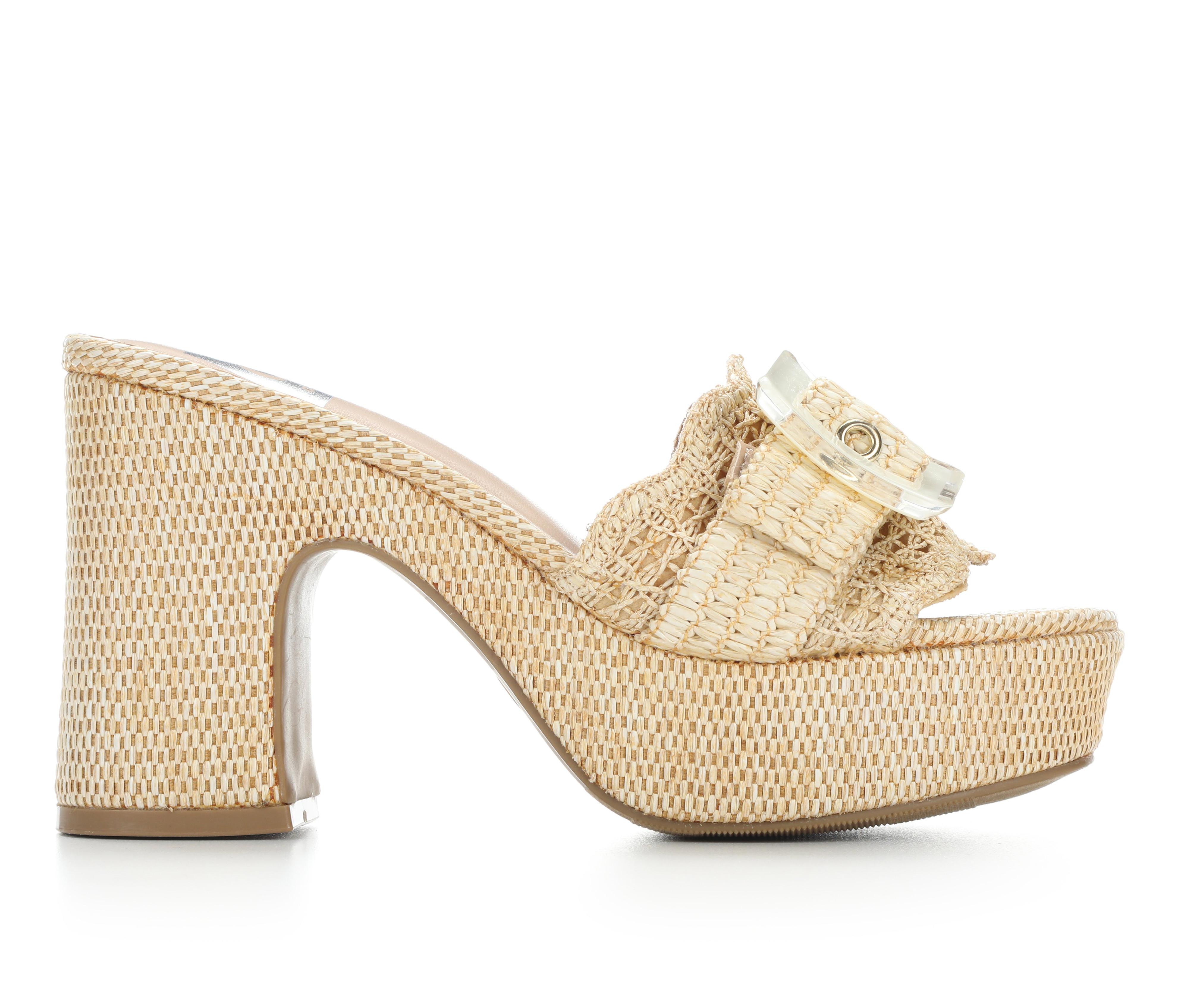 Women's DV BY DOLCE VITA Mirium Dress Sandals A breezy statement heel that captures warm-weather style effortlessly. Crafted with woven raffia material and a bold buckle accent, this slide brings natural texture and sophistication to any outfit. The platform base and block heel create flattering height with all-day balance and comfort.