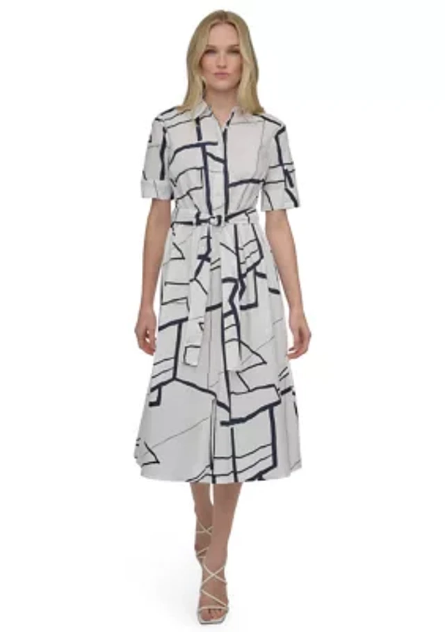 Women's Elbow Sleeve Collared Geo Print Shirtdress
