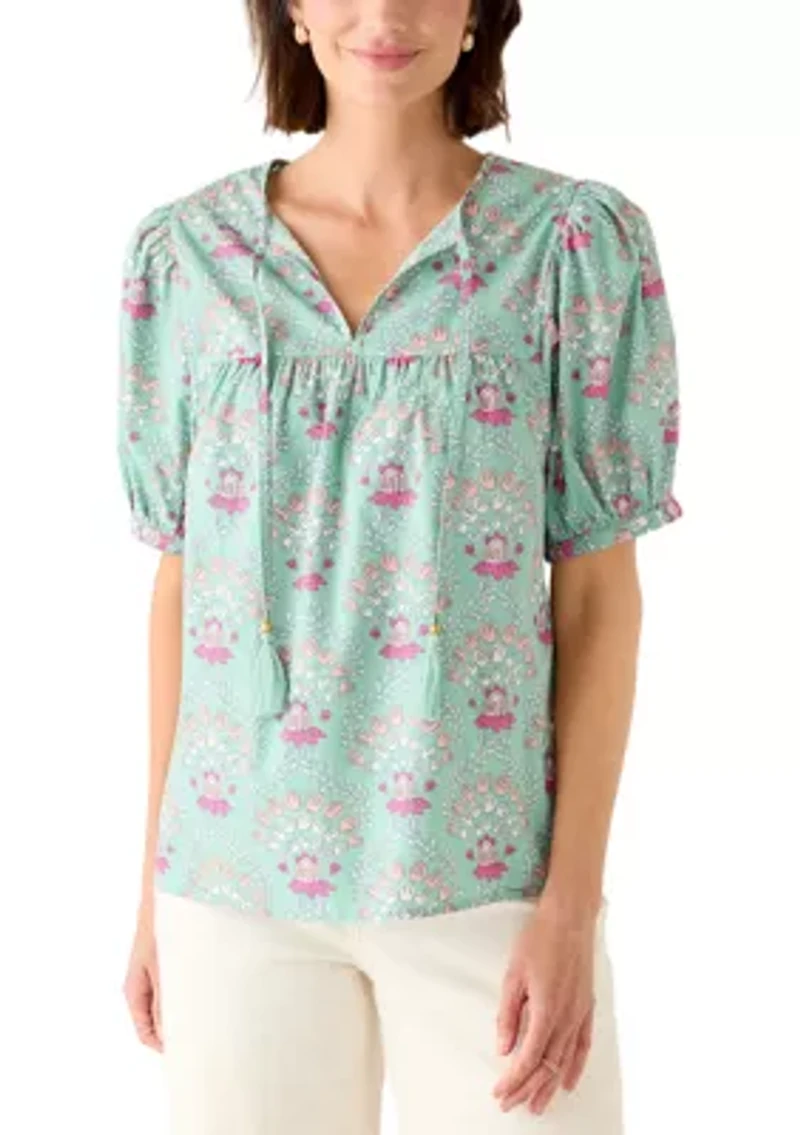 Add boho charm to your wardrobe with this Crown & Ivy™ top. Featuring relaxed elbow-length sleeves and a split neckline adorned with playful tassel ties, this top blends comfort with effortless style. Pullover Split neck Elbow sleeves Imported Belk Exclusive Product Specifications 26.5" L Material & Care 100% cotton Machine washable