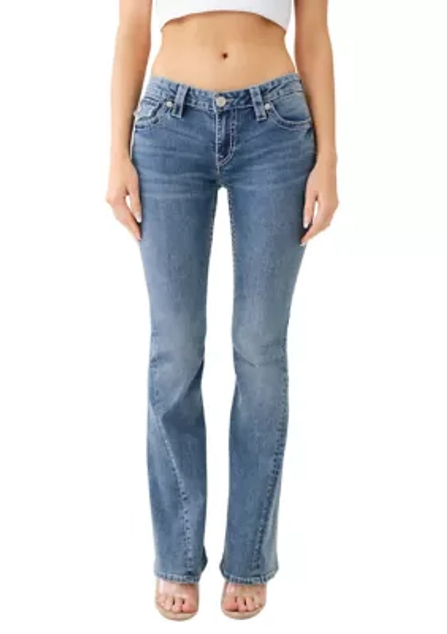 High-Rise Light Wash Heart Embroidered Flare Jeans