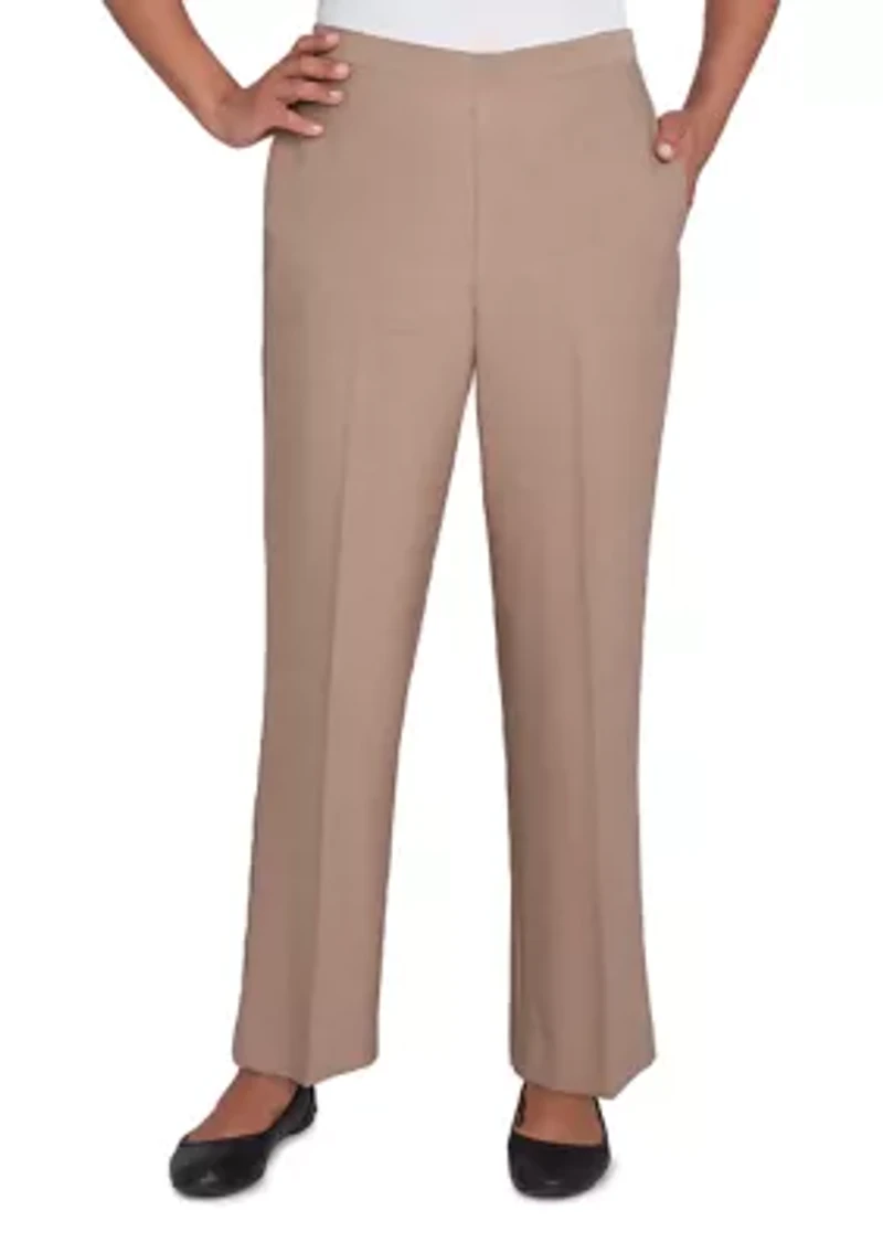 Designed to flatter your proportions, these pants from Alfred Dunner offer a tailored fit, side seam pockets for convenience, an elastic back for flexibility and functional side pockets. Elastic waistband Unlined Regular fit Imported Product Specifications 30.5" Inseam Material & Care Polyester Machine washable