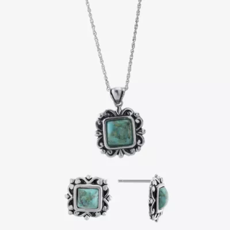 Womens Enhanced Blue Turquoise Sterling Silver 2-pc. Jewelry Set