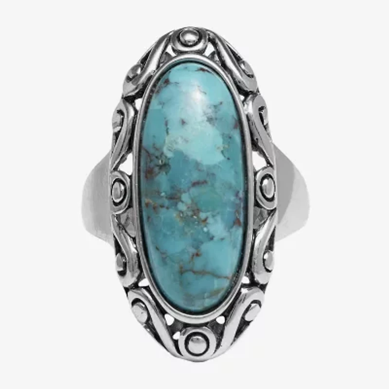 Womens Enhanced Blue Turquoise Sterling Silver Cocktail Ring