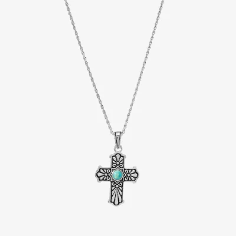 Womens Enhanced Blue Turquoise Sterling Silver Cross 18 Inch Pendant Necklace