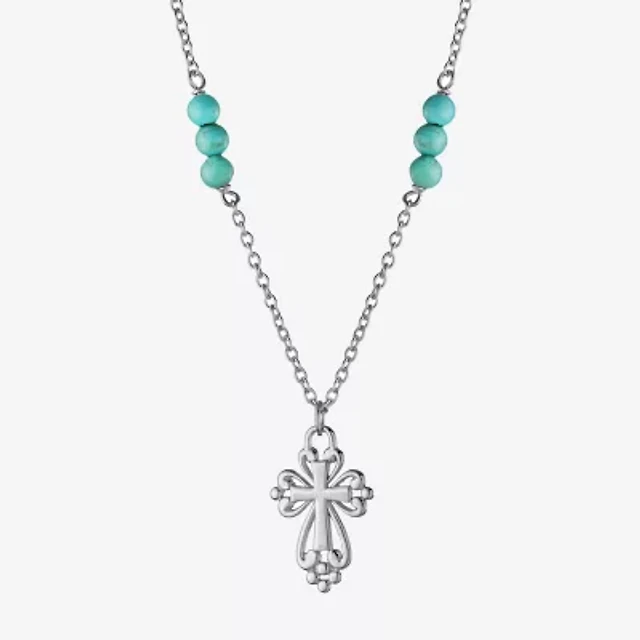 Womens Enhanced Blue Turquoise Sterling Silver Cross 18 Inch Pendant Necklace
