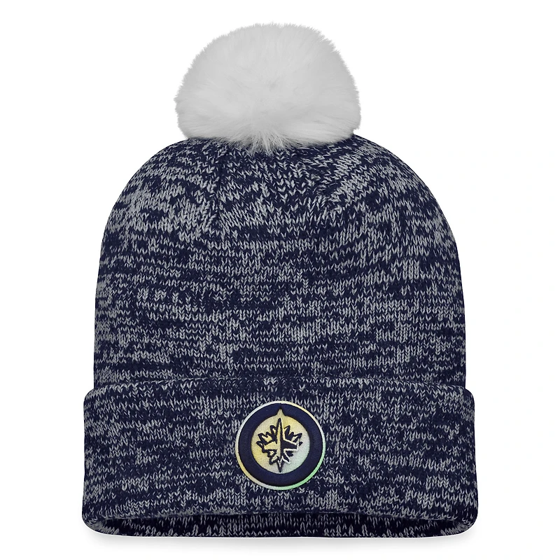Women's Fanatics Navy Winnipeg Jets Glimmer Cuffed Knit Hat with Pom