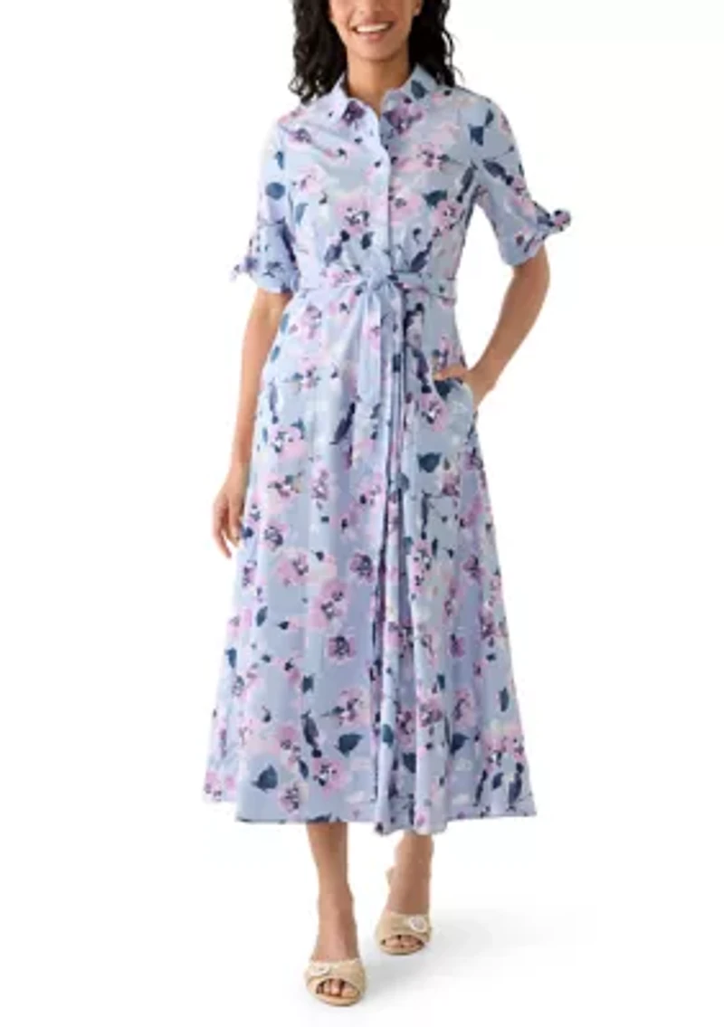 This lovely Calvin Klein dress, with its charming shift style and beautiful print, offers a chic look that's perfect for all-day wear. Button closure Collar Short sleeves Unlined Imported Product Specifications 51" L Material & Care 100% cotton Hand wash