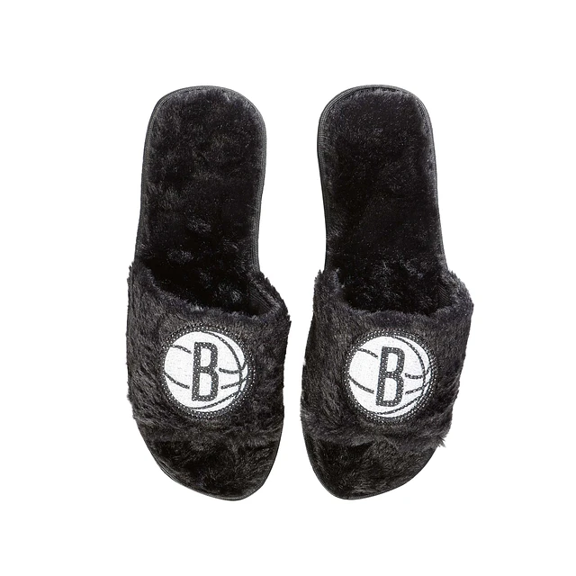 Women's FOCO Black Brooklyn Nets Rhinestone Fuzzy Slippers