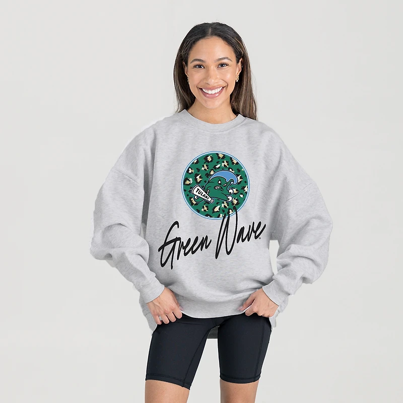 Women's Gameday Couture Ash Tulane Green Wave Premium Fleece Pullover Sweatshirt