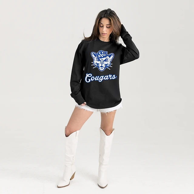 Women's Gameday Couture Black BYU Cougars Oversized Honor Roll Long Sleeve T-Shirt