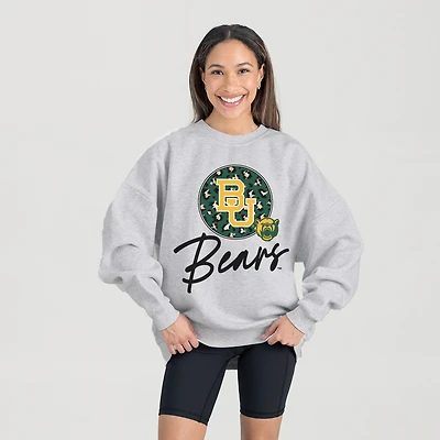 Women's Gameday Couture Ash Baylor Bears Oversized Tradition Refined Premium Fleece Sweatshirt