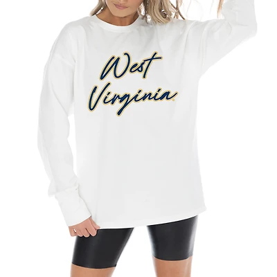Women's Gameday Couture White West Virginia Mountaineers Midweight Oversized Long Sleeve T-Shirt