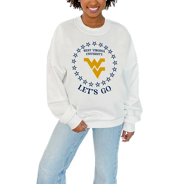 Women's Gameday Couture White West Virginia Mountaineers Stars Premium Fleece Drop Pullover Sweatshirt
