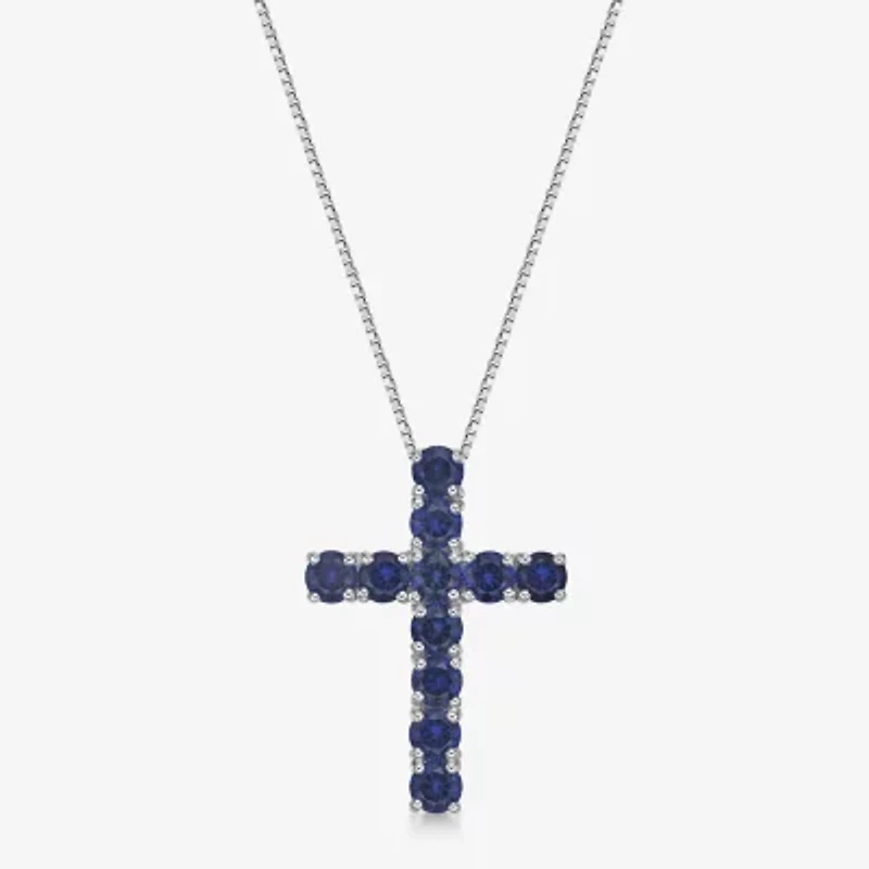 Womens Gemstone Sterling Silver Cross Pendant Necklace