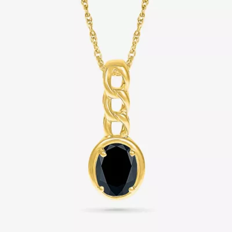 Womens Genuine Black Onyx 10K Gold Sterling Silver Oval 18 Inch Pendant Necklace