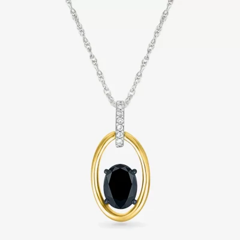Womens Genuine Black Onyx 10K Gold Sterling Silver Oval 18 Inch Pendant Necklace