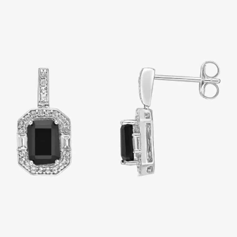 Womens Genuine Black Onyx Sterling Silver Drop Earrings