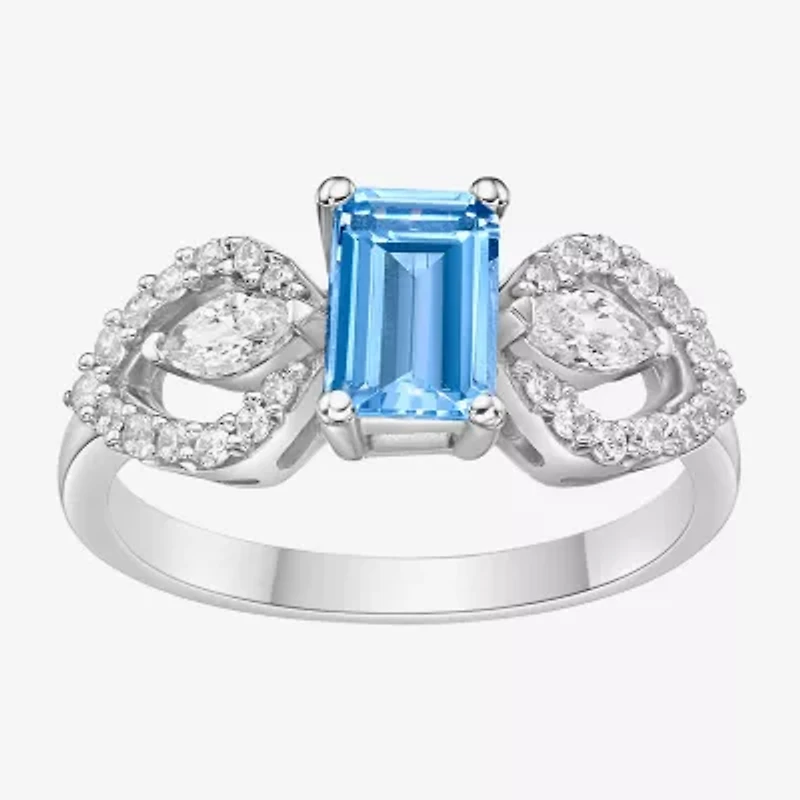 Womens Genuine Blue Aquamarine 10K White Gold Cocktail Ring