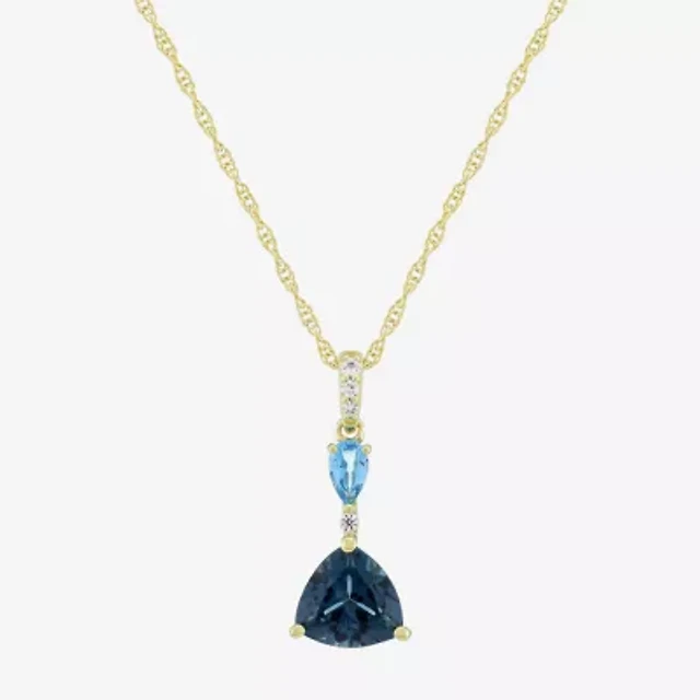 Womens Genuine Blue Topaz 14K Gold Over Silver Triangle 18 Inch Pendant Necklace