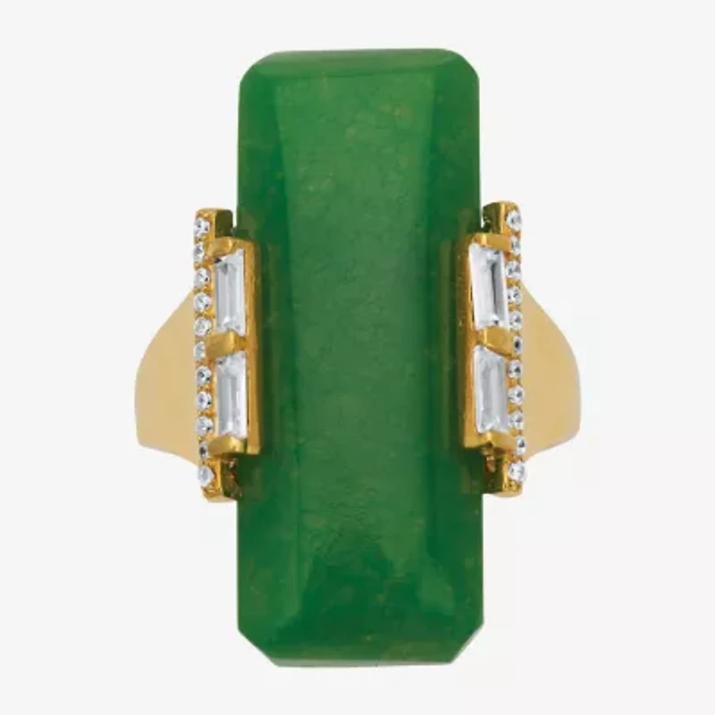 Womens Genuine Green Jade 18K Gold Over Silver Rectangular Cocktail Ring