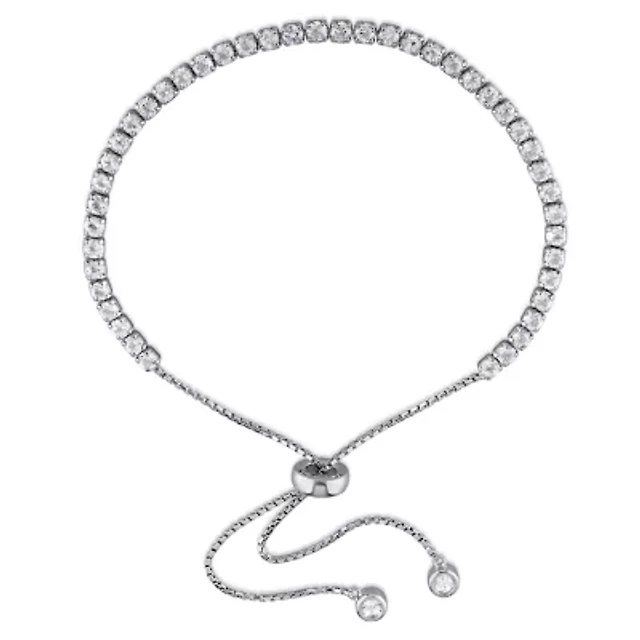 Womens Genuine White Topaz Sterling Silver Bolo Bracelet