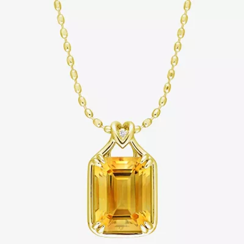 Womens Genuine Yellow Citrine 18K Gold Over Silver 18 Inch Pendant Necklace
