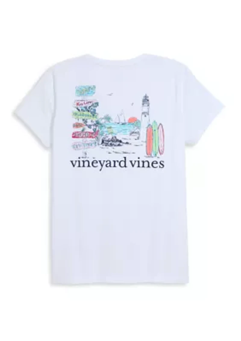 Featuring a graphic on the front and back, this Vineyard Vines T-shirt is perfect for all-day comfort and style. Crew neck Short drop shoulder sleeves Unlined Imported Product Specifications 25.5" L Material & Care 100% cotton Machine washable