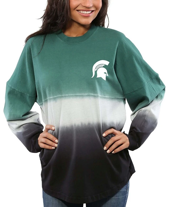Women's Green Michigan State Spartans Ombre Long Sleeve Dip-Dyed T-shirt