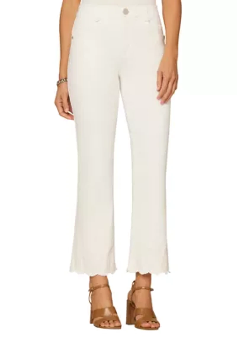 Women's High Rise Cropped Denim Pants with Scalloped Flare in Franklin, TN
