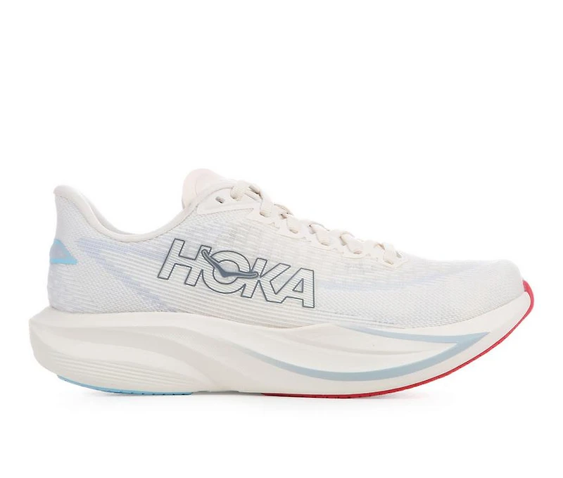 Women's Hoka Mach 7 Running Shoes The Hoka Mach 7 is a low-top running shoe designed for everyday training and performance running. The upper features a mesh-like textile construction that promotes breathability during high-activity use. A lace-up closure delivers a secure, adaptable fit, while the thick, cushioned midsole and rubber outsole provide substantial underfoot support and traction across a variety of surfaces.
