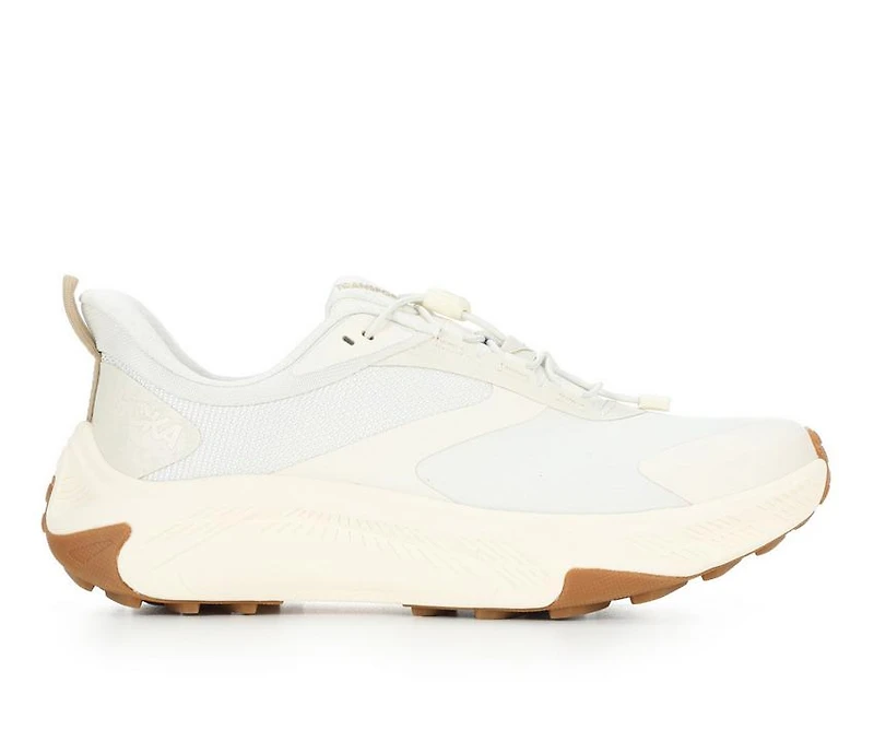 Women's Hoka Transport 2 Trail Running Shoes The Hoka Transport 2 is a low-top, lace-up athletic shoe built to move between daily errands and light trail use. A mesh-style upper supports breathable wear, while the thick, cushioned midsole is designed to soften impact on longer walks. A rubber outsole with traction lugs helps it handle a mix of pavement and packed paths.