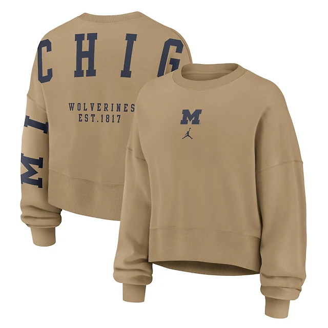 Women's Jordan Brand Tan Michigan Wolverines Oversized Phoenix 2-Hit Pullover Sweatshirt