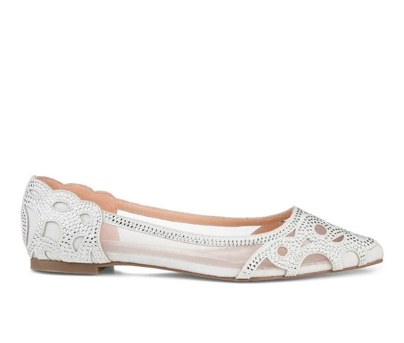 Women's Journee Collection Batavia Flats Want the beauty of a heel with the comfort of a flat? Meet Batavia by Journee Collection. This pointed toe flat has an intricate rhinestone detail and a pointed toe. It also features a scalloped heel cuff while the mesh fabric detail completes the design for a unique look.