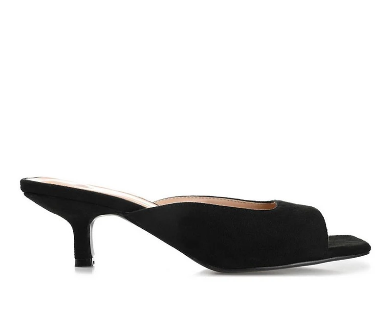 Women's Journee Collection Larna Dress Sandals The quintessential kitten heel with a darling open toe, the Larna by Journee Collection. This slip-on style features vegan leather uppers detailed with a square toe box and heel for a retro look. A padded insole and tiny 2-inch heel finish the design. At Journee Collection, our pump styles will let you go from a fun night out with the girls to kicking back and relaxing at the end of the night without any trouble.