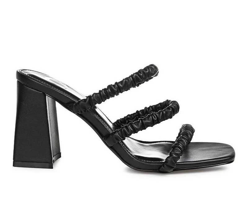 Women's Journee Collection Reagaan Dress Sandals An eye-catching look for summer, the Reagaan by Journee Collection. This breezy heel features vegan leather straps detailed with ruching throughout for a fresh look. A covered block heel and padded insole finish the design for extra comfort.