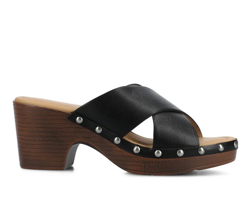 Women's Journee Collection Silvana Wedge Sandals These sandals deliver a bold height boost while maintaining the ease of a slip-on silhouette. The wide upper strap provides a comfortable hold across the foot, and the tall heel adds sleek elevation. Designed for casual styling, they pair effortlessly with warm-weather looks. A smooth interior feel helps keep each step comfortable.