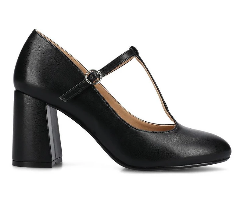Women's Journee Collection Talani Pumps Elevate your look with these elegant T-strap pumps designed to bring sophistication to any occasion. Featuring a delicate strap across the instep, these pumps provide a secure yet stylish fit. A sleek 3-inch heel delivers flattering height, while the cushioned insole ensures comfort through long days or nights. Perfect for pairing with dresses, skirts, or tailored pants, these pumps are a wardrobe must-have.