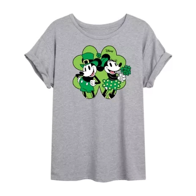 Disney Shamrock and Luck Tee Womens Juniors Crew Neck Short Sleeve Regular Fit Mickey Friends Graphic T-Shirt