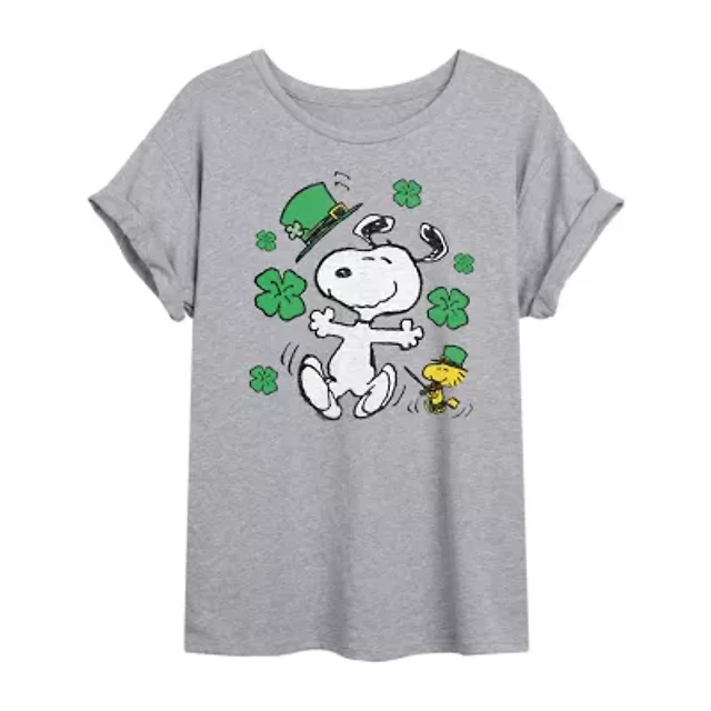 St Patrick'S Day Womens Juniors Crew Neck Short Sleeve Regular Fit Peanuts Snoopy Graphic T-Shirt