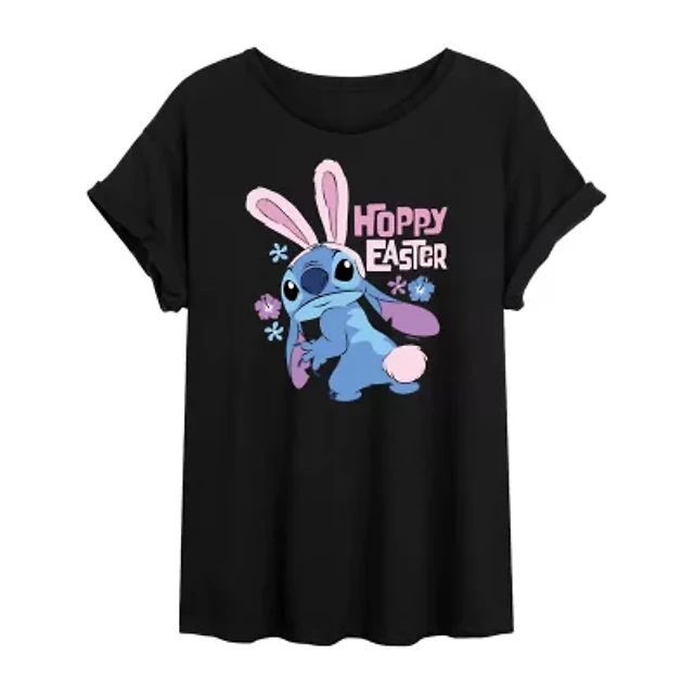 Womens Juniors Scoop Neck Short Sleeve Oversized Lilo & Stitch Graphic T-Shirt