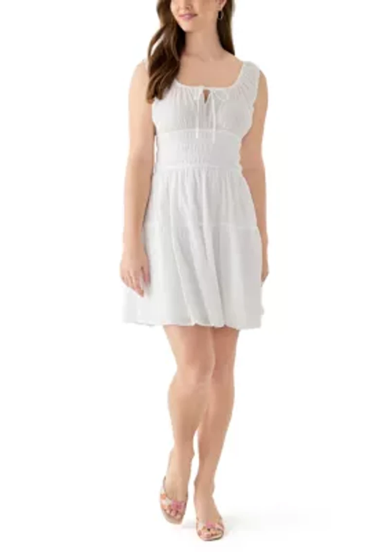 Lovely and lightweight, this charming dress from Oak & Trellis is finished with a keyhole neck and is featured in a sleeveless silhouette. Pullover Keyhole neck with tie Sleeveless Lined Imported Product Specifications 35" L Material & Care Cotton, polyester Machine washable