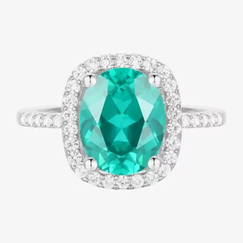 Womens Lab Created Green Yttrium Aluminum Garnet Sterling Silver Oval Halo Cocktail Ring