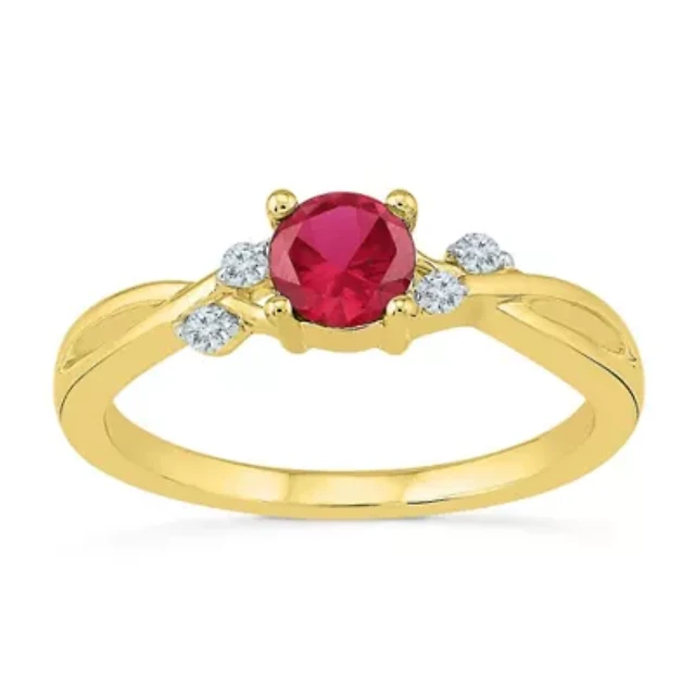 Womens Lab Created Red Ruby 10K Gold Cocktail Ring