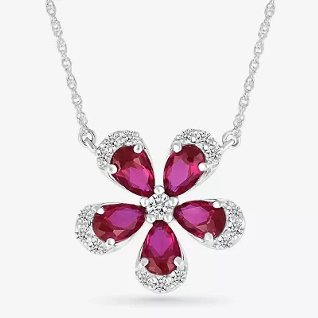 Womens Lab Created Red Ruby Sterling Silver Flower 18 Inch Pendant Necklace in Franklin, TN