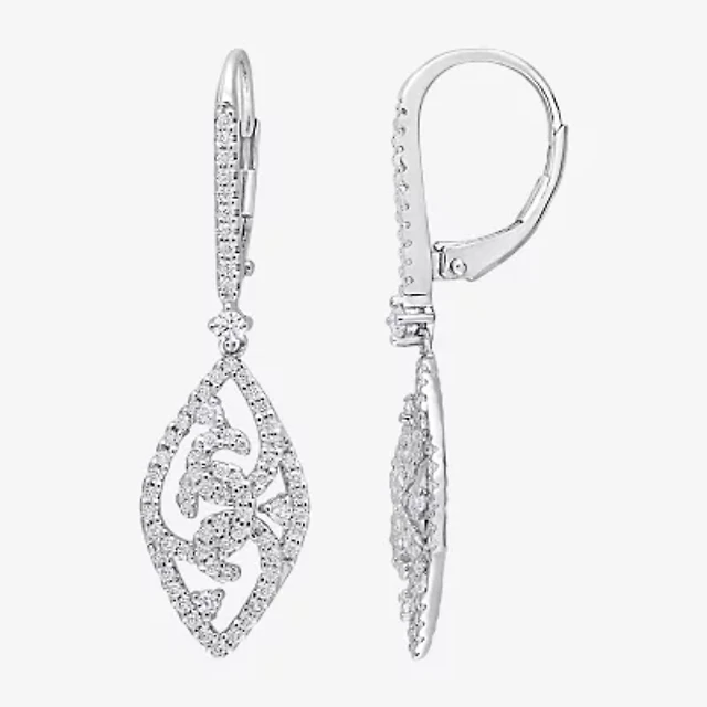 Womens Lab Created White Sapphire Sterling Silver Drop Earrings