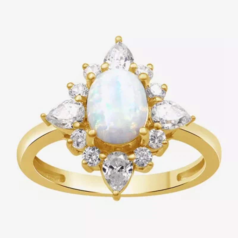 Womens Lab Created White Opal 14K Gold Over Silver Oval Cocktail Ring in Franklin, TN