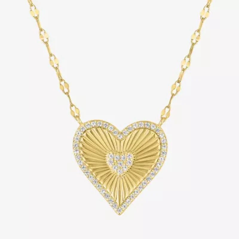 Womens Lab Created White Sapphire 14K Gold Over Silver Heart 16 Inch Pendant Necklace