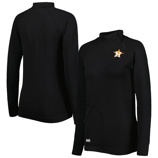 Women's Levelwear Black Houston Astros Verse Asymmetrical Raglan Tri-Blend Quarter-Zip Jacket