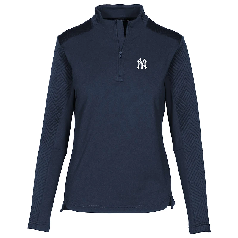 Elevate your New York Yankees style with the Levelwear Daybreak Insignia 2.0 Quarter-Zip Pullover Top. This lightweight pullover is perfect for mild temperatures, featuring moisture-wicking and anti-static fabric for comfort. The jacquard knit contrast fabric and articulated sleeves provide a stylish and functional touch, while the bottom slits allow for ease of movement. Stay cool and comfortable while repping your favorite team with this moisture-wicking pullover.